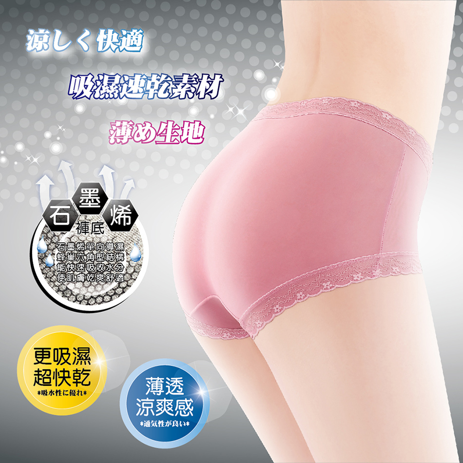 褲底嚴選石墨烯材質,更西濕超快乾 長時間穿都乾爽舒適
